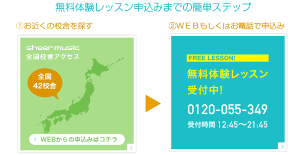 サイトに行き、日本地図の書かれたここから、通える校舎を選んでウクレレコースがあるか確認してみてください